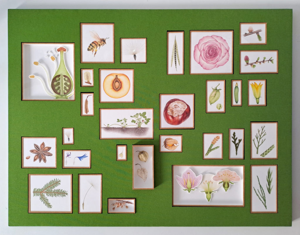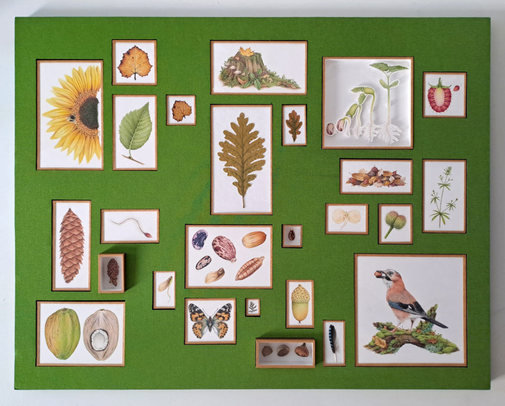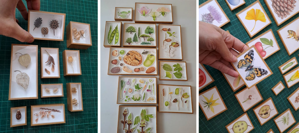 Les 8 panneaux entoilés avec plus de 200 petits encadrements et boîtes encastrés ainsi que les 7 illustrations grand format (40 x 50cm) sont contenus dans une boîte permettant un transport compact et léger (moins de 30kg). D’autres éléments peuvent compléter l’exposition (mobile à suspendre, puzzle, éléments pour vitrine, recherches et maquettes du projet, etc).